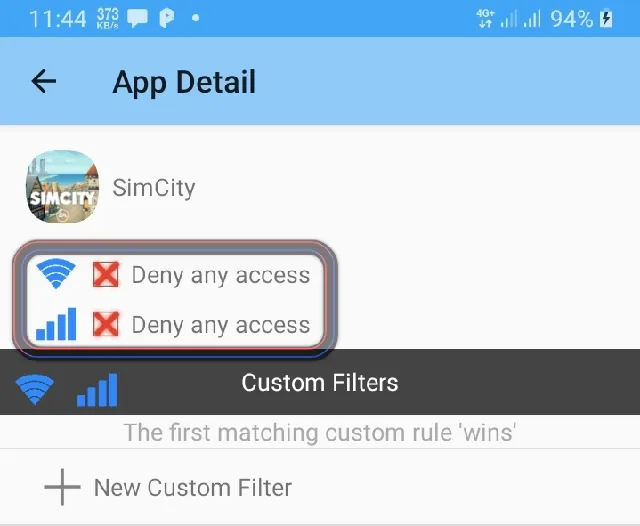 tick both boxes (WiFi, Data) to “Deny any access”, Then go back to the “Home”