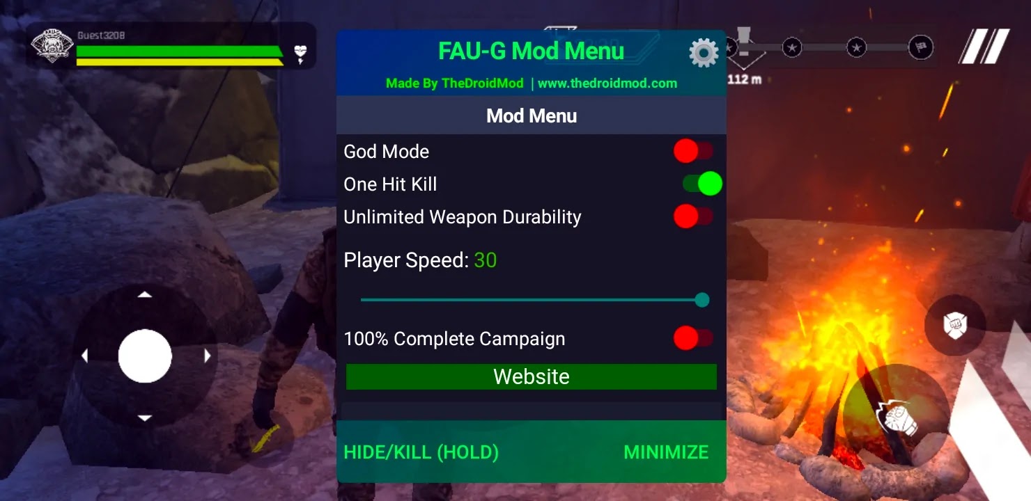 FAU-G: Fearless and United Guards Mod Menu Apk contains God Mode, One Hit Kill, Unlimited Weapon Durability, Player Speed Slider, and Instant Win/100% Complete Campaign. We also modded the game to make it work in the emulators and lower android version devices.