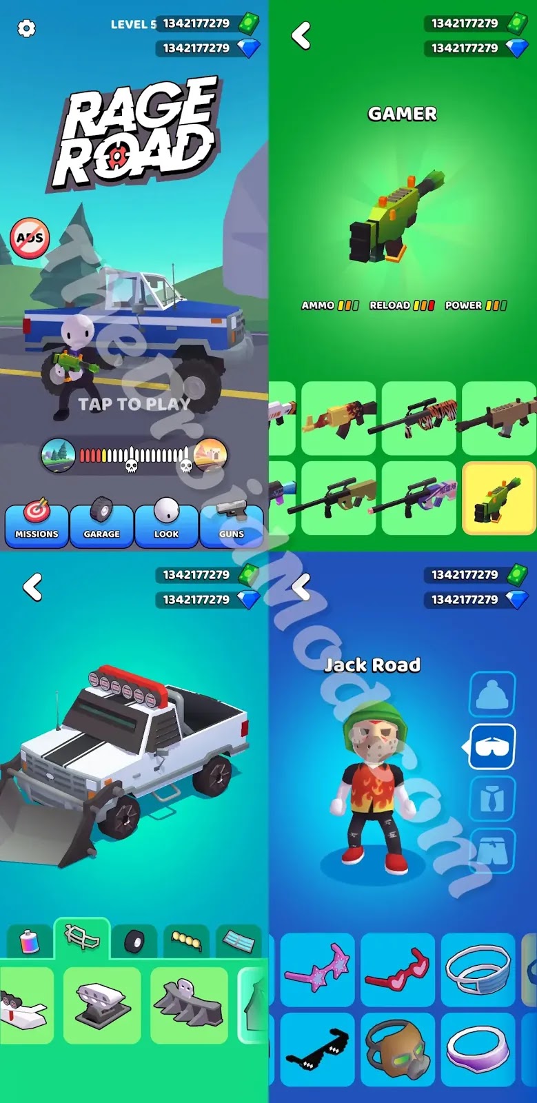 Rage Road has two currencies in the game. Gems are the premium currency of the game. You can get gems and bucks by completing levels, opening cheats, completing daily tasks. You can also buy them through IAP. In Rage Road Mod Apk you will get unlimited Gems and Bucks for free. You can easily purchase any items such as guns, skins, and many more using unlimited gems and bucks!