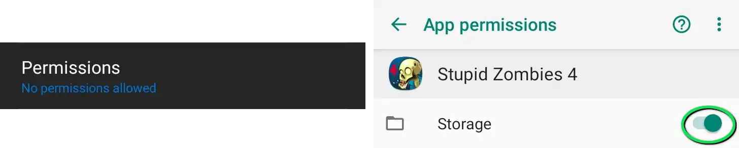 c. Find and Tap on Stupid Zombies 4 then Tap on Permissions & Then Turn on Storage Permission.!